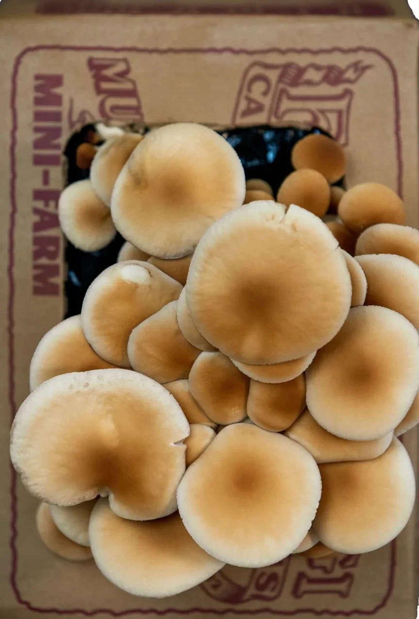 A grow-it-yourself mushroom mini-farm craft kit from Far West Fungi