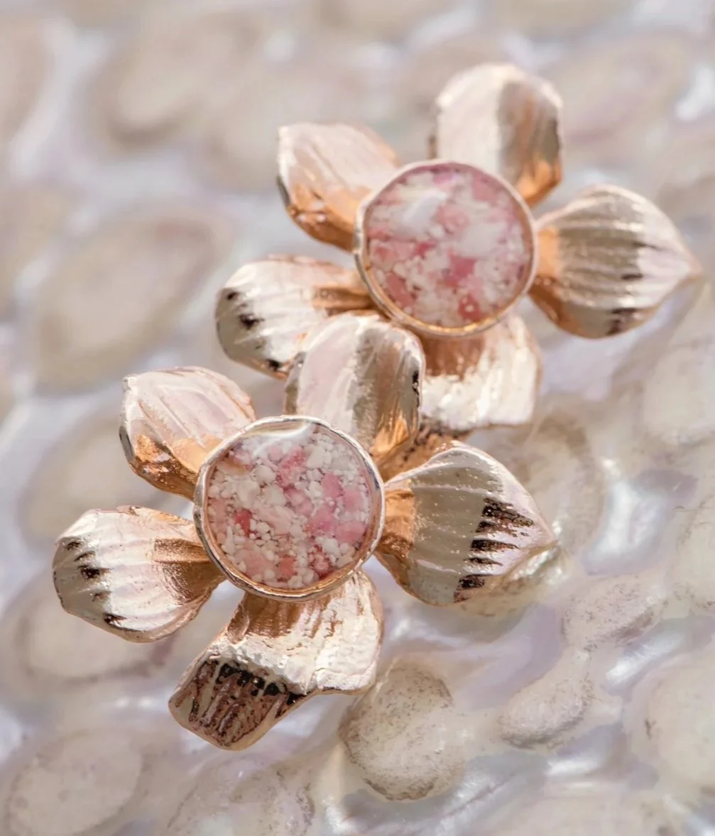 Jennifer Rodrigues crafts stunning pink sand jewelry set in sterling silver. Each piece is hand-sculpted and cast in her Bermuda studio.
