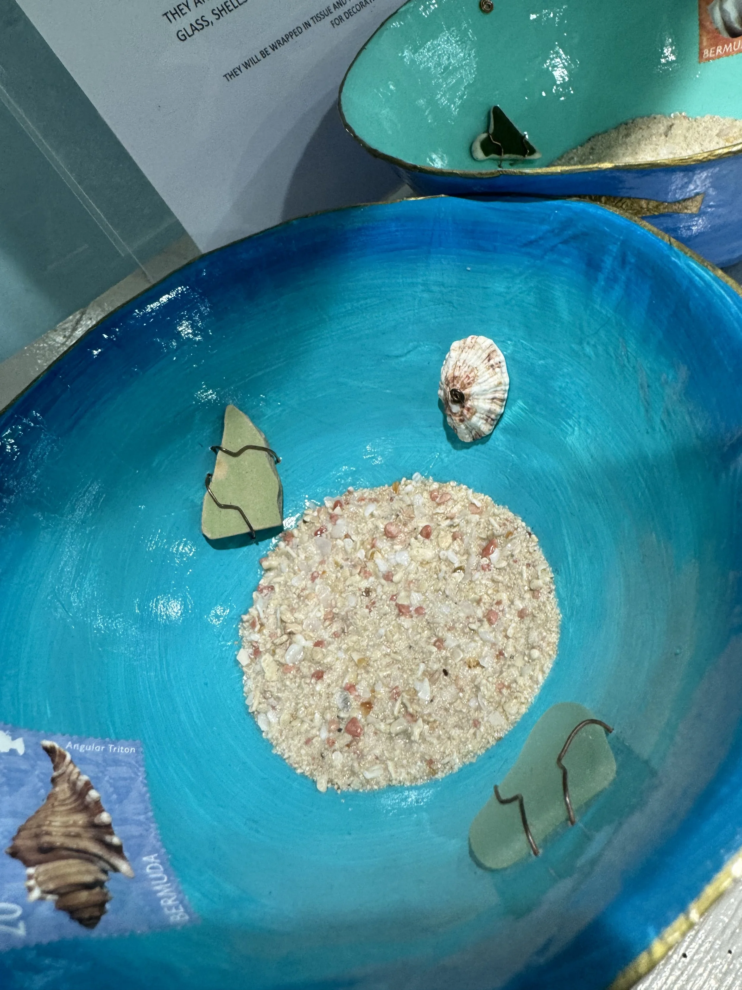 Lynn Morrell creates breathtaking jewelry using sterling silver, Bermuda’s iconic pink sand, and mesmerizing blue limpet shells. Her Bermuda Beach Bowls are crafted from recycled paper into paper mache vessels with sand, shells and sea glass.