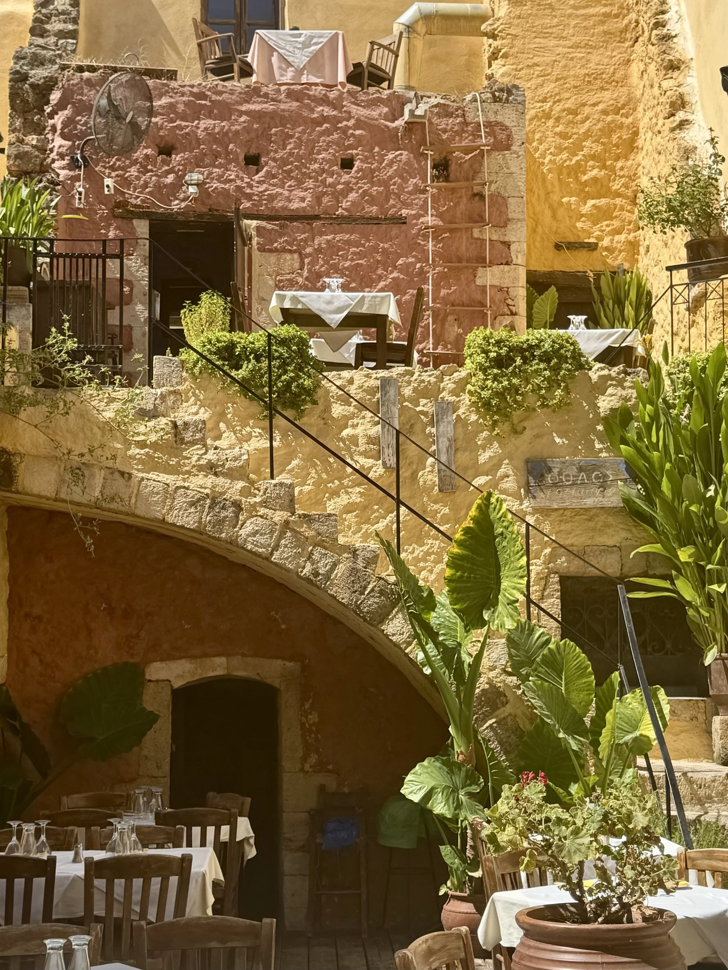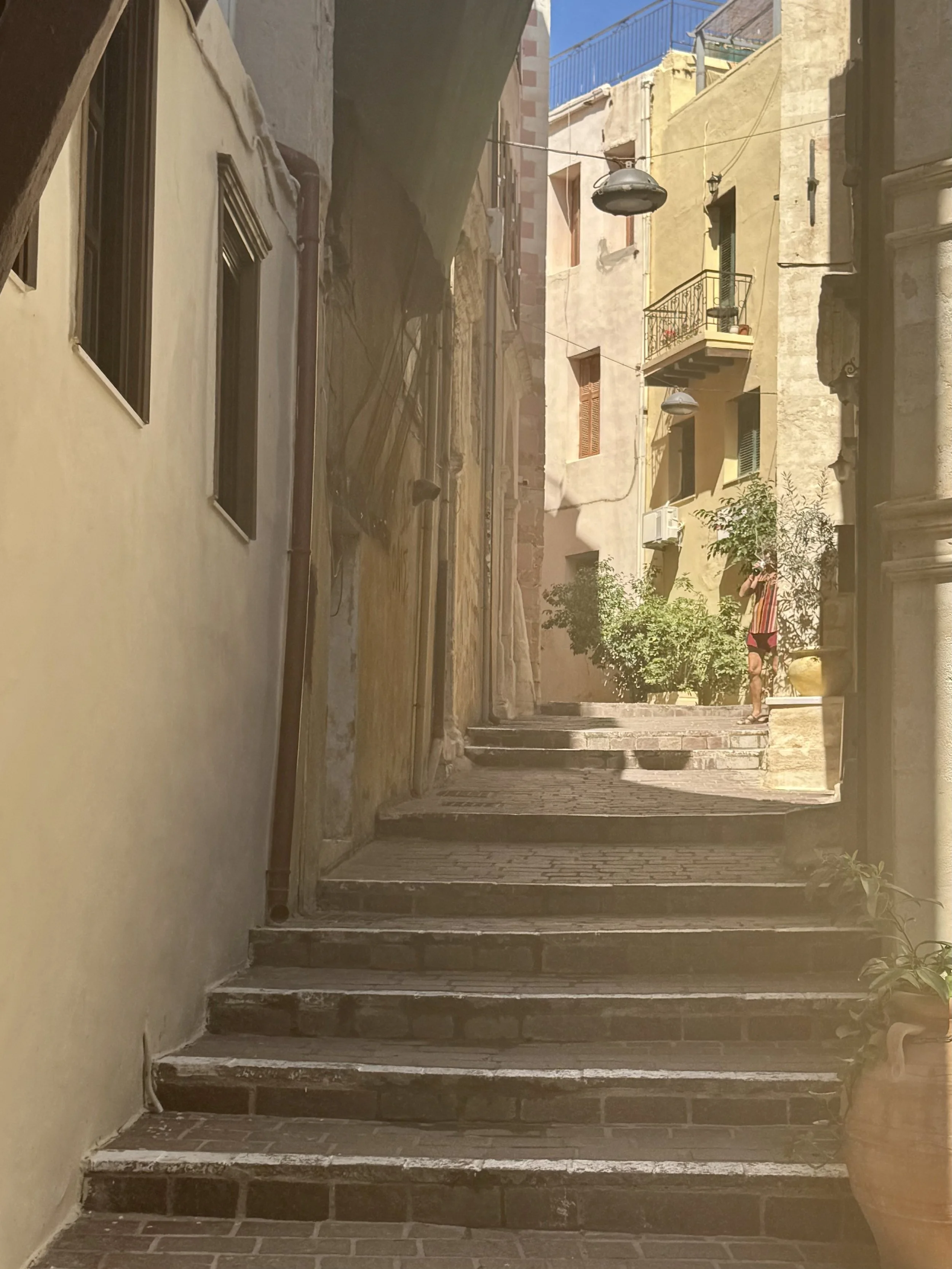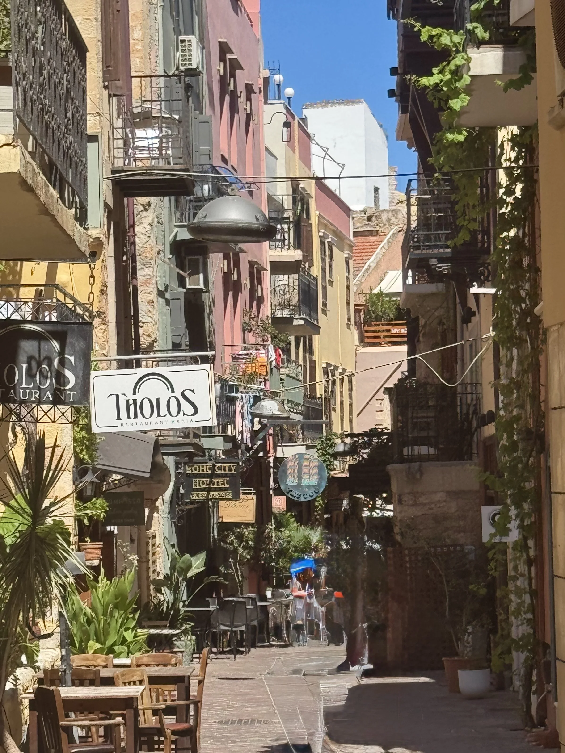 Chania’s Old Town is a maze of narrow lanes winding past centuries-old stone buildings, arched doorways, and hidden staircases. Bougainvillea cascades over balconies, while weathered, wooden doors often conceal working studios just beyond the street. To uncover these tucked-away treasures, I booked a private walking tour with a knowledgeable local guide through Viator.