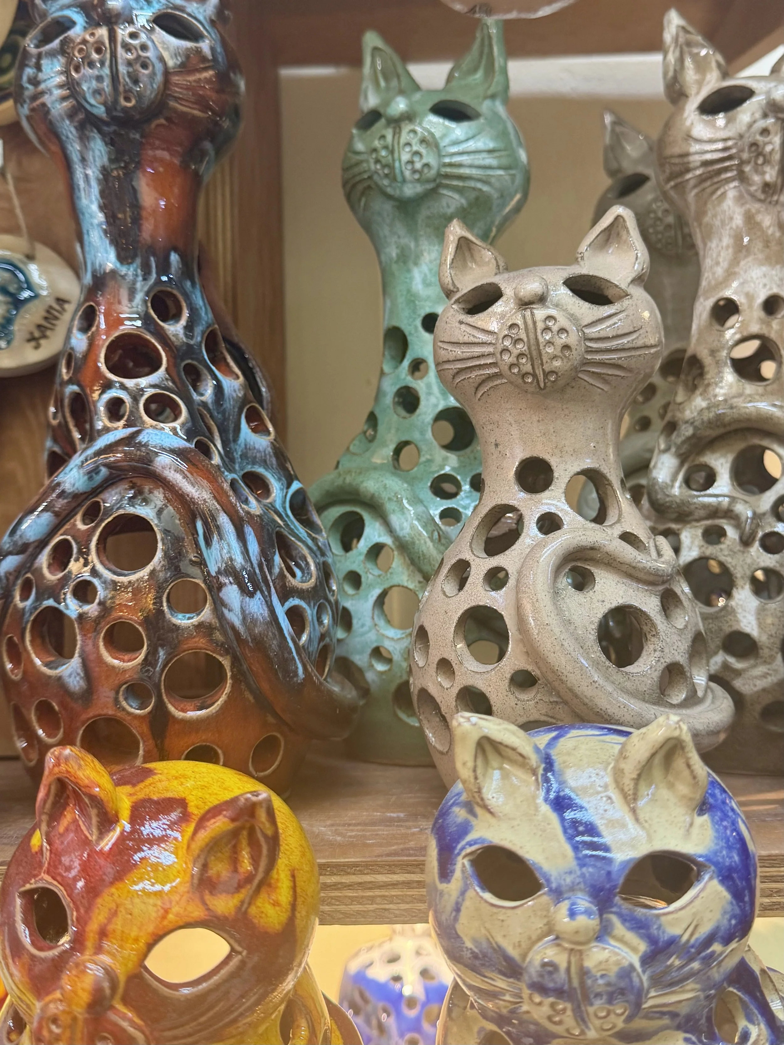 Beyond the main streets of the Venetian Quarter lie hidden courtyards and quiet alleys where art seems to appear unexpectedly. Here you’ll discover family-run ateliers specializing in driftwood and sea-inspired art, carved olivewood pieces, stone and marble décor, and hand-thrown ceramics finished in traditional Cretan blues, greens, and earth tones.