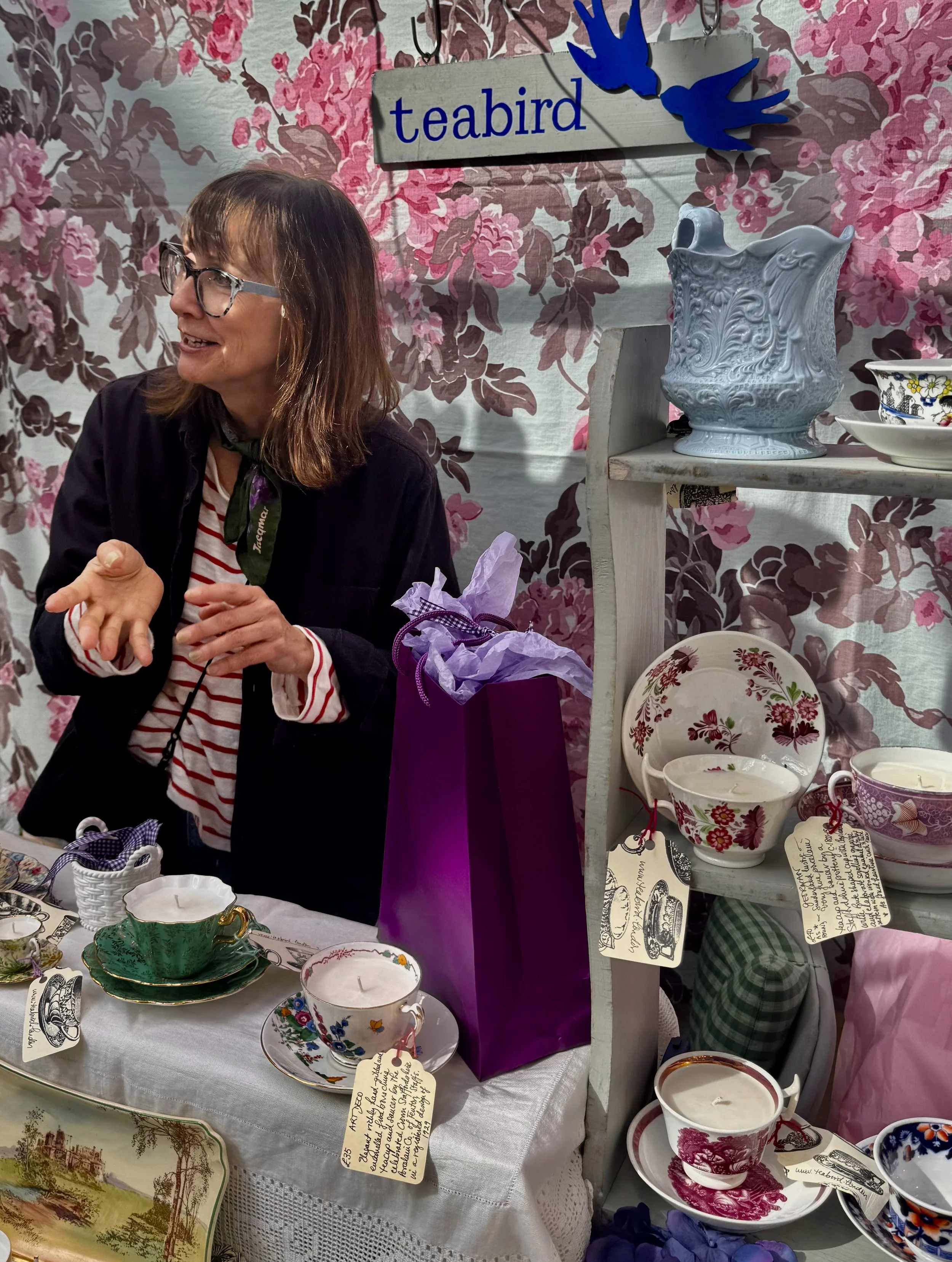 Antique British teacups, creamers, and tureens, some over 200 years old, are thoughtfully transformed into hand-poured candles. Each purchase from Teabird includes a handwritten note detailing the china’s design period and material, from delicate porcelain to pressed glass and silver.