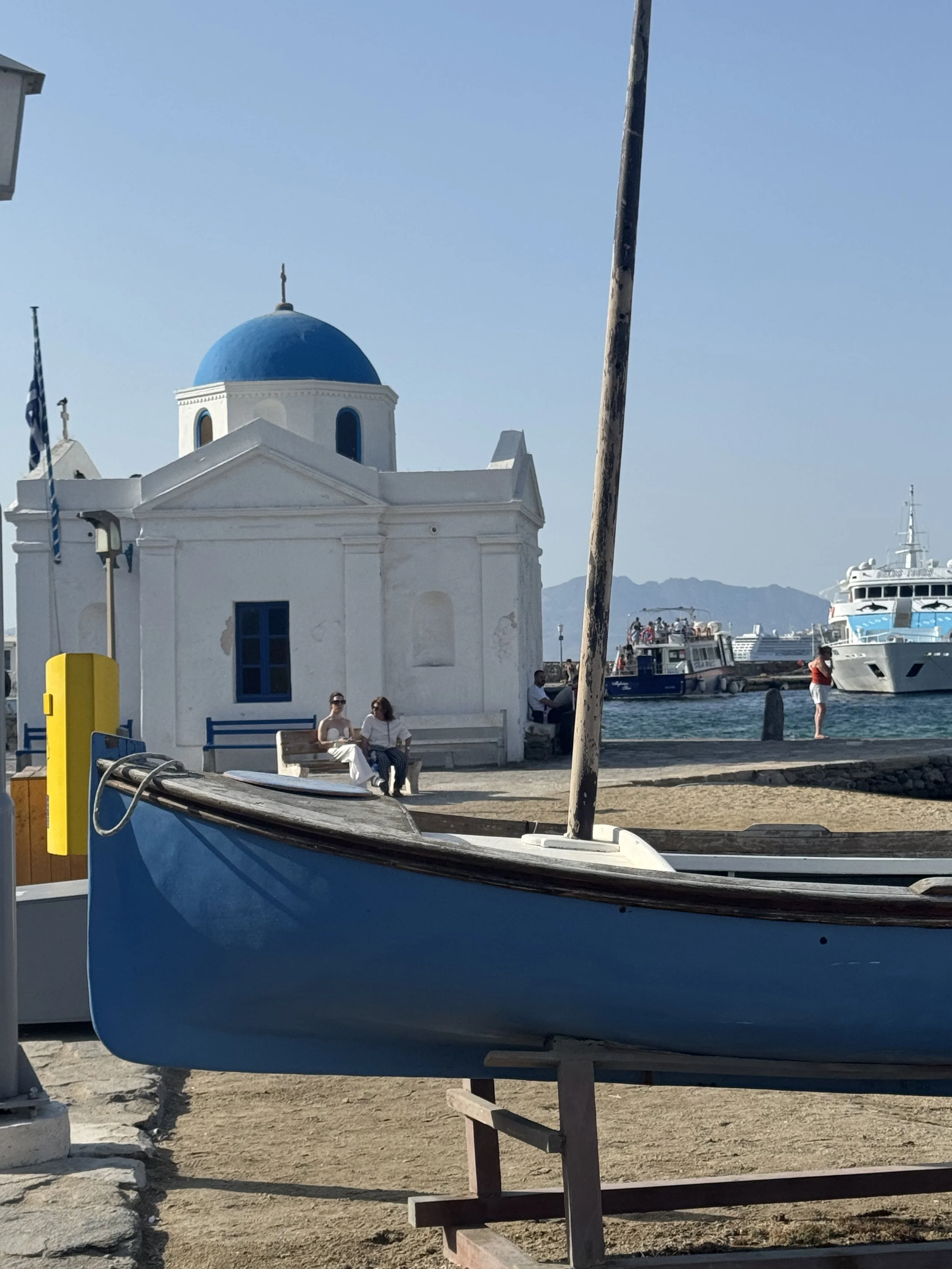 Ano Mera Village — Tradition Beyond the Spotlight - Just a short drive from Chora, Ano Mera offers a calmer, more local atmosphere. Around the monastery square and nearby lanes, family-run workshops and modest boutiques focus on traditional crafts and everyday artistry. It’s where Mykonos feels most rooted