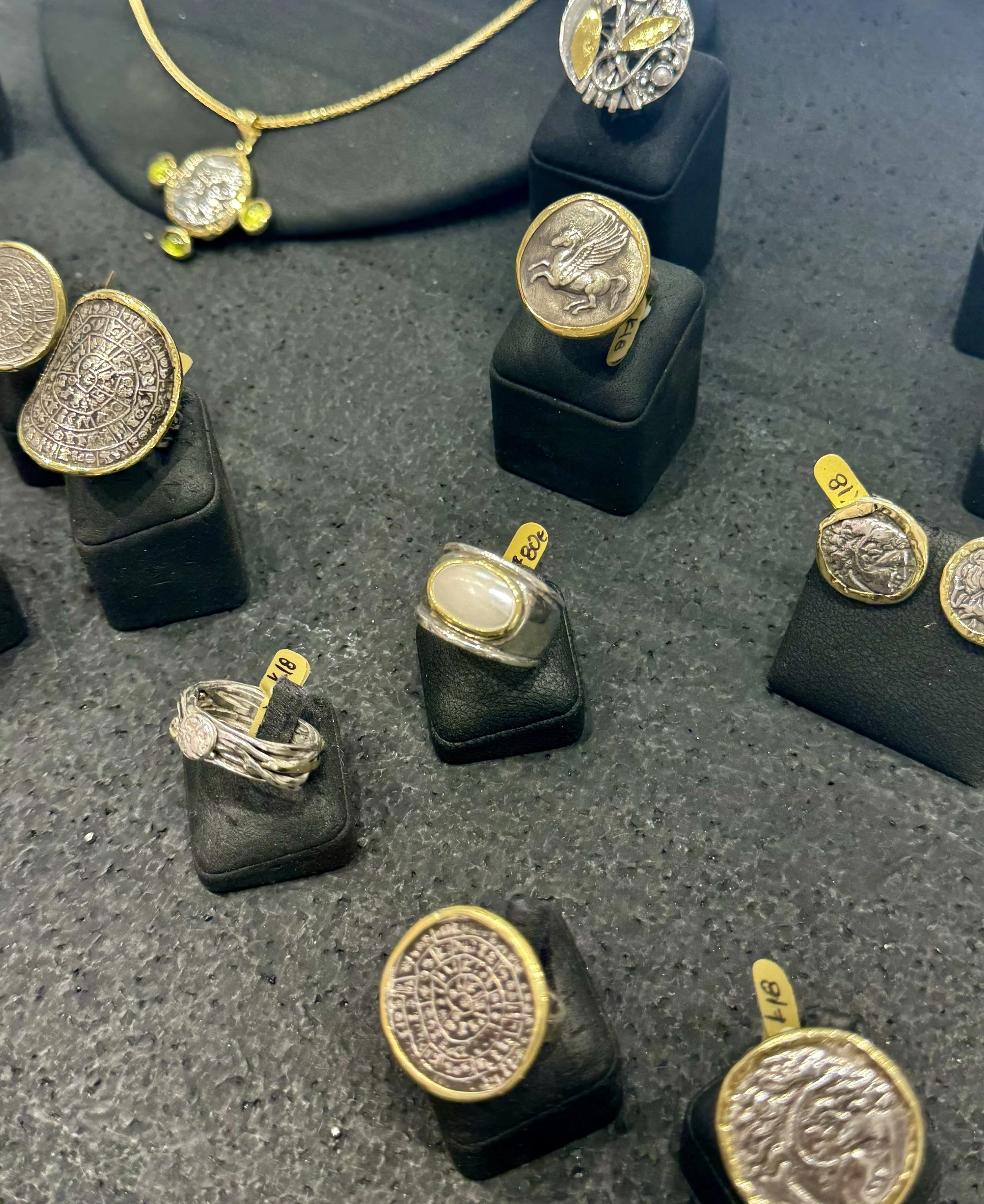 Misento Jewelry Workshop – Artisan Thanasis Misentos creates jewelry inspired by ancient Greek mythology and the natural beauty of the Aegean. Using gold, silver, mixed metals, and carefully chosen stones, his pieces feel organic, powerful, and deeply connected to place.