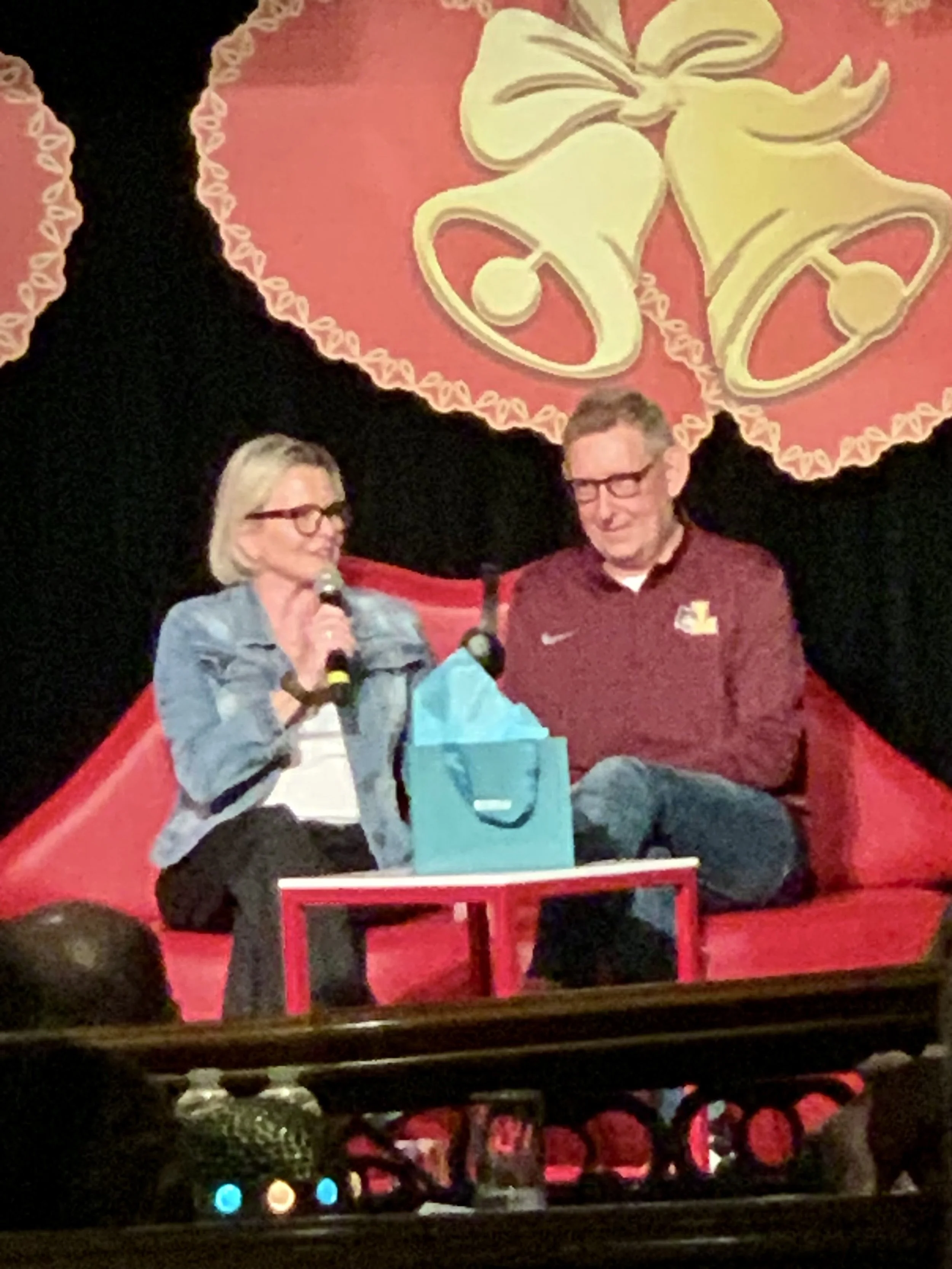 The ship’s entertainment team selects a newlywed couple, a couple married 10-20 years and a “lifetime” couple, which was us.
