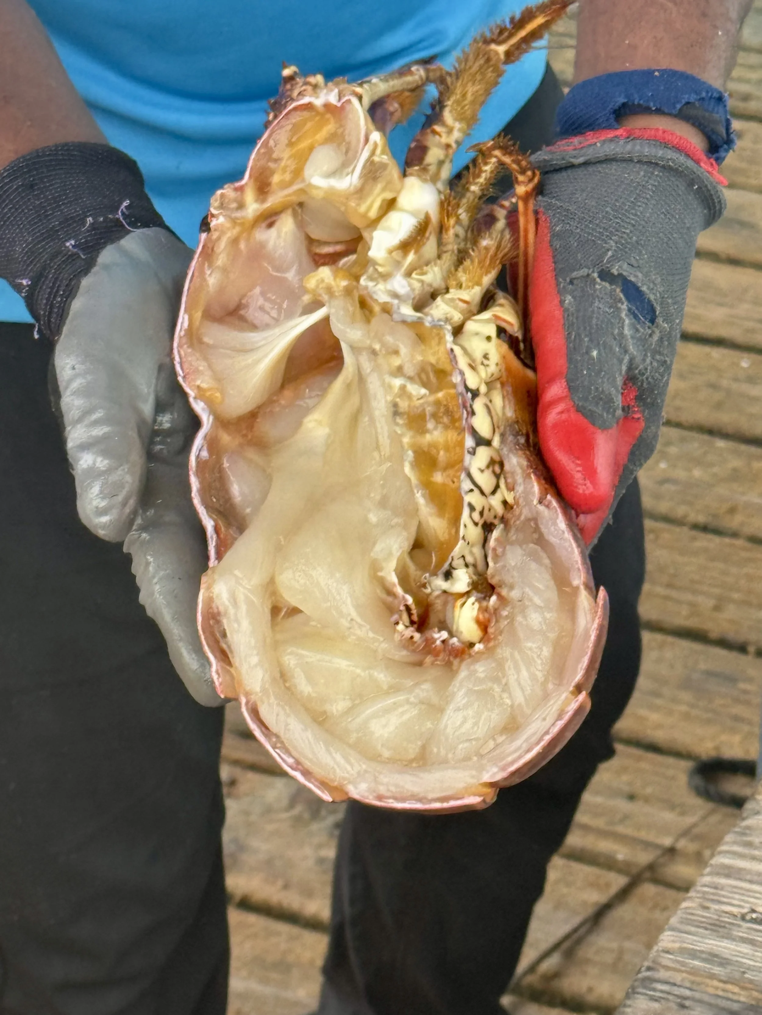 Anagada is famous for their lobster. Locals catch and prepare them daily upon advance request, guaranteeing the freshest from the sea. That evening, dinner was at Sid’s Pomato Point. Each plate came with two enormous tails—succulent, sweet, and grilled to perfection. We lingered with cocktails, meeting Sid, the owner, before heading back to the boat under a sky full of stars.