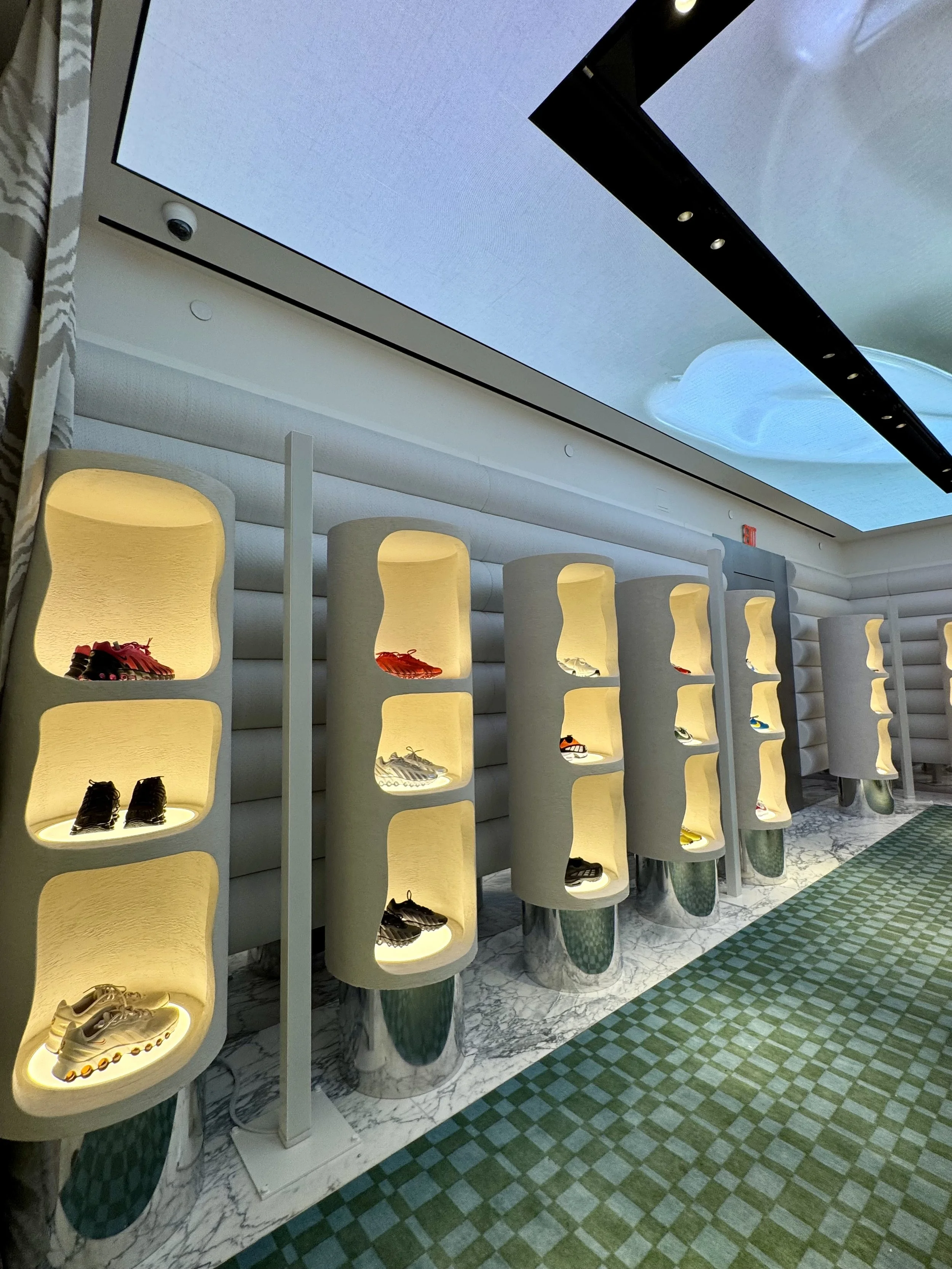 The Sneaker Room -Also on the main floor, The Sneaker Room’s LED screen ceiling draws guests in to a dynamic gallery of active footwear. During my visit, Nike promoted the release of its exclusive Nike x Printemps Cortez shoe.