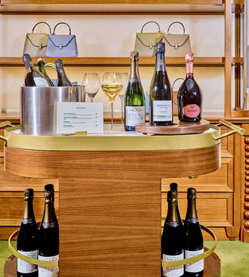 As guests explore the charming rooms of Printemps, they will also discover quaint champagne carts with servers scattered throughout. Nearby, plush seating invites guests to relax, sip, and enjoy the stylish Parisian ambiance. Sante!