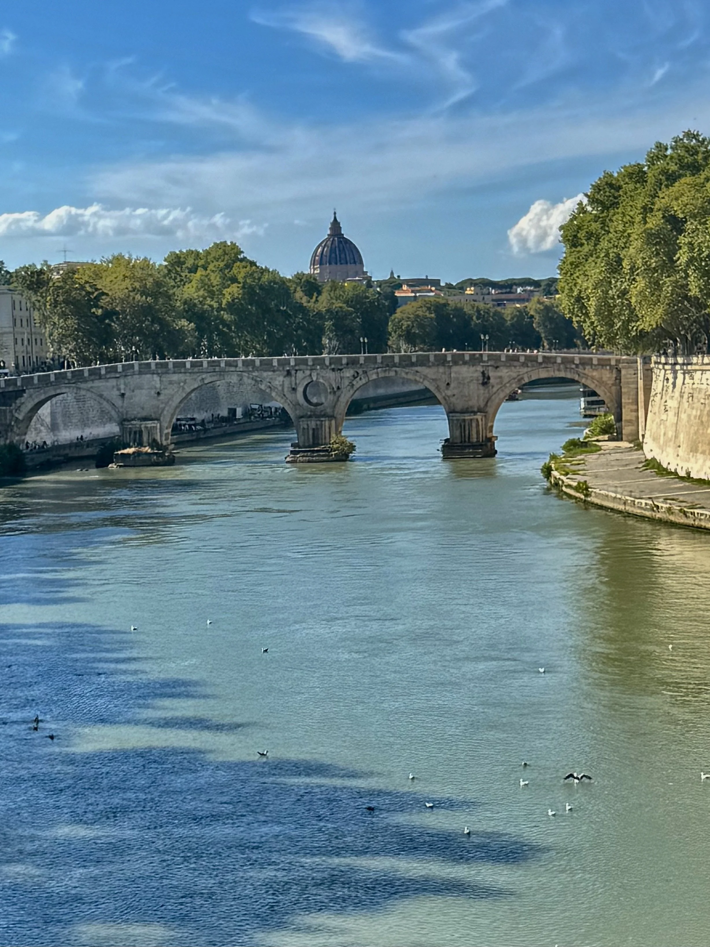 After a morning surrounded by masterpieces in the Vatican, I crossed the Tiber River into Trastevere. This neighborhood is a colorful mix of winding alleys, ivy-clad façades, and laundry lines that frame the sky. The streets feel a bit wild and very local, with a relaxed mood that invites you to slow down.
