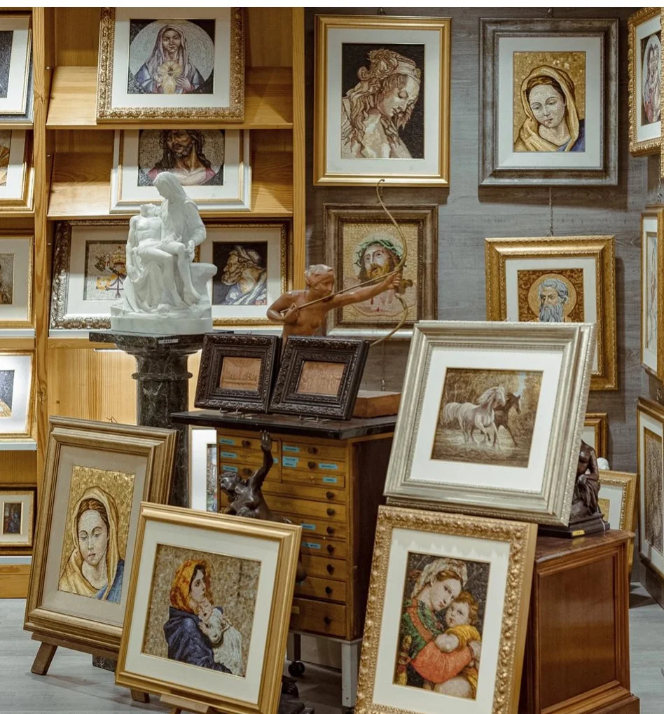 Rome’s legacy with mosaic artistry is especially evident here. Many of the Vatican’s ancient floors and walls are adorned with intricate mosaics, each tiny tessera (glass or stone) placed by hand with meticulous precision. Just outside the Vatican, small workshops continue the craft, carrying forward techniques that date back thousands of years.