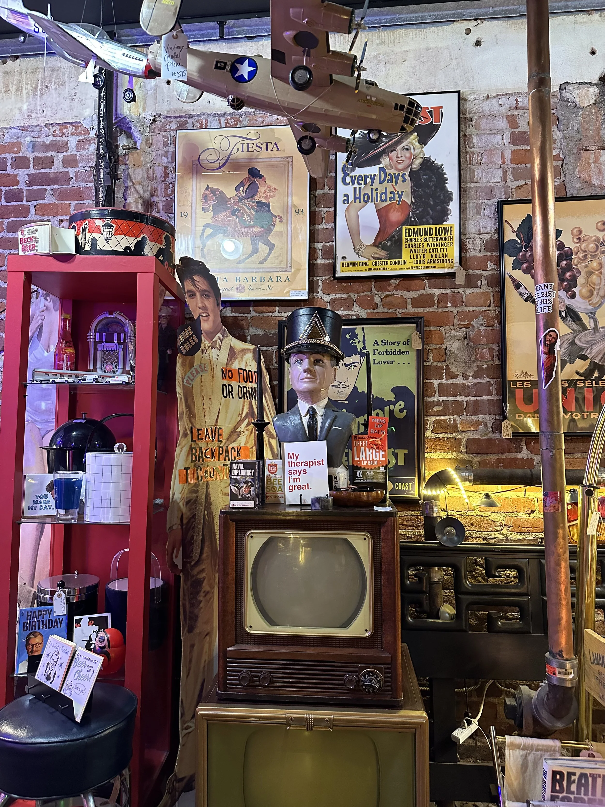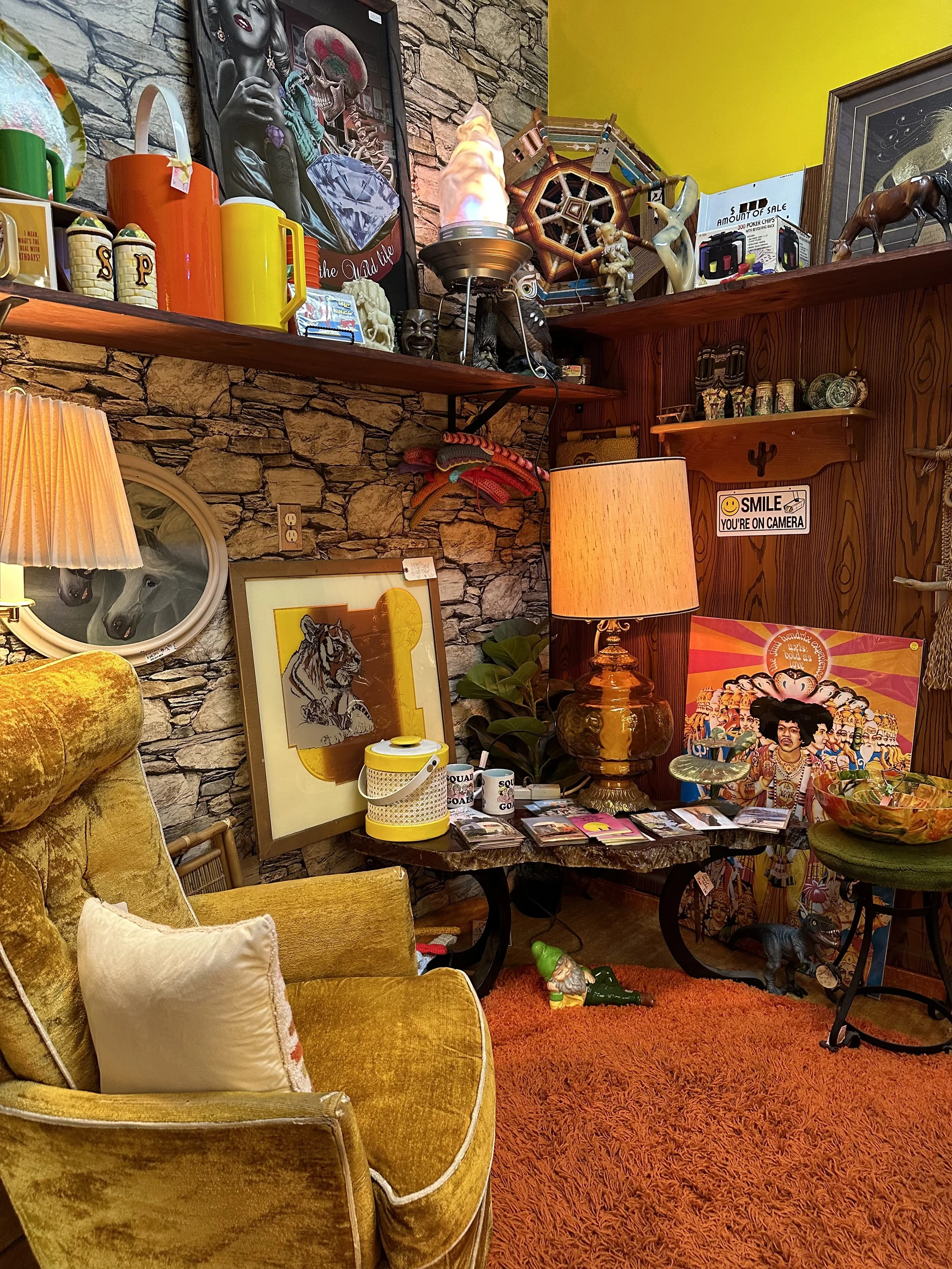 For retro enthusiasts, the Urban Flea Market is a nostalgic journey through time. Owner Sara Gehris curates a fascinating mix of art, home décor, and collectibles from over 25 local vendors. Each section is arranged into themed vignettes—think Tiki bars, Man Caves, and Disco corners—filled with vintage Polaroid cameras, turntables, vinyl records, and retro kitchenware from the 60’s and 70’s. One of the biggest hits? The collection of classic magazines, including vintage Playboys!