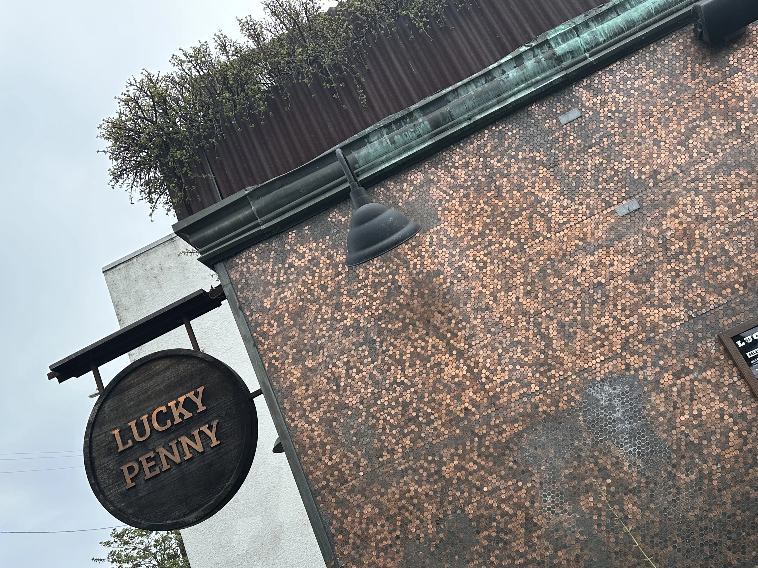 In the same garden/patio area, visitors will also find Lucky Penny, a pizzeria housed in a charming building covered in thousands of real copper pennies.