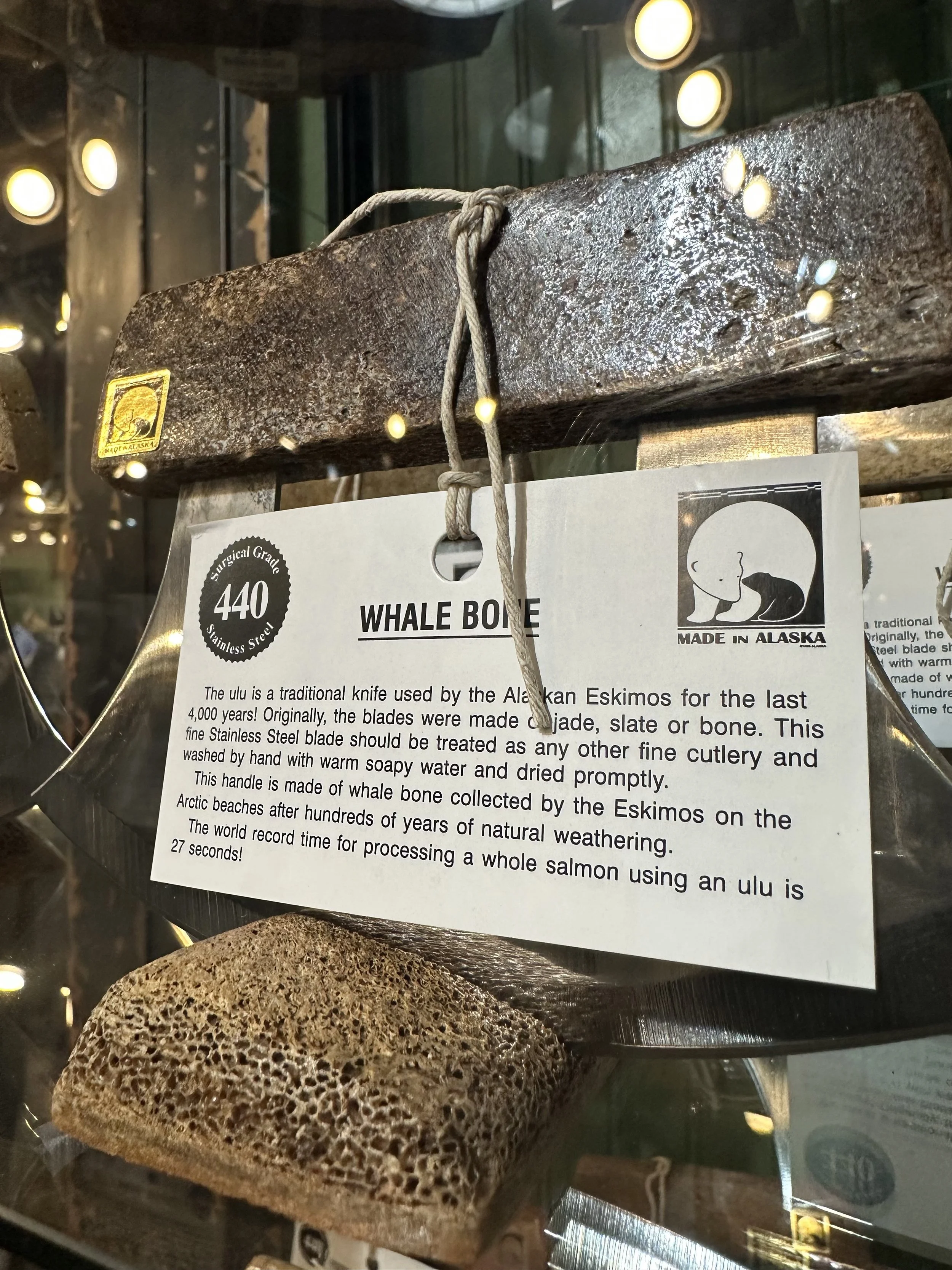 A hand-carved bone ulu knife from Brenner’s at the Icy Strait Point