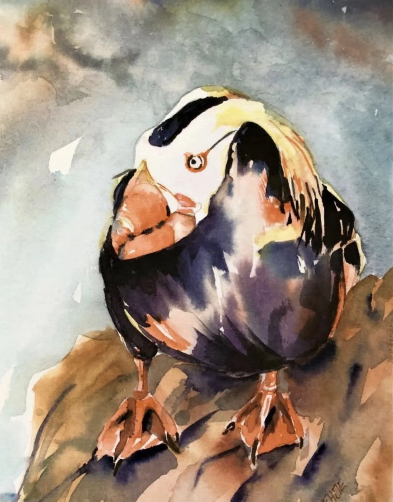 A former salmon fisherman with her husband, Pat captures the true beauty and wildness of the outer coast of Southeast Alaska. In addition to original paintings, prints and tea towels are available.