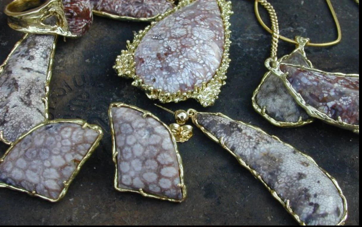 Local artist Claudia Amory transforms foraged materials like tree roots and mother of pearl into extraordinary jewelry, home decor, and accessories. Visit her boutique at Palms Court Gardens for unique and sustainable artistic designs.