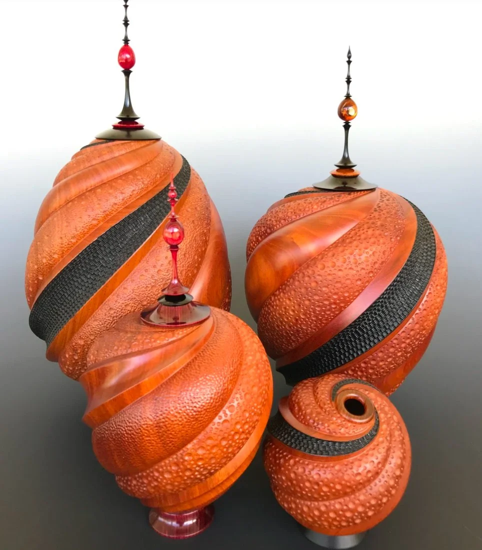 Behind the Old Mill, a talented woodcarver creates modern sculptures and functional art, such as intricately carved headboards.