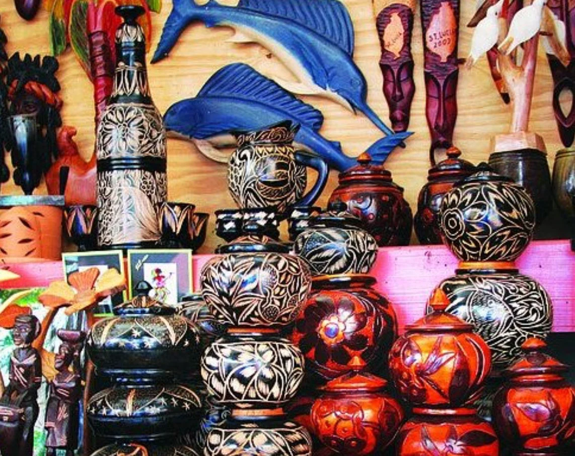 St. Lucia’s vibrant craft scene immerses visitors in the island’s cultural heartbeat. Known for its pottery, wood carvings, spices, and rums, St. Lucia bursts with artisanal color and flavors.